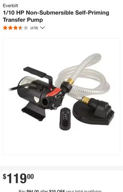 Everbilt 1/10 HP Non-Submersible Self-Priming Transfer Pump$40Eleven Mile, AZ