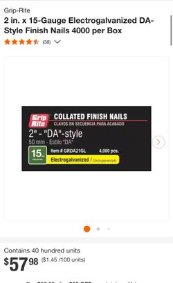 2 in. x 15-Gauge Electrogalvanized DA-Style Finish Nails 4000 per Box$30Eleven Mile, AZ