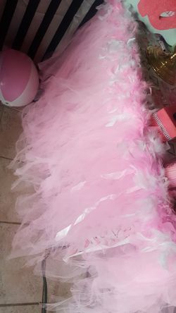 Table cover tutu skirt with pink/white boa feathers$80Hesperia, CA