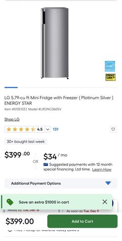 BRAND NEW LG FRIDGE WITH FREEZER$300Riverside, CA