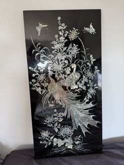 Vintage Mother-of-Pearl Inlaid Black Lacquer Panels – Asian Bird & Floral$700Placentia, CA
