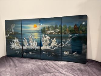 4-Panel Chinese Lacquer Wall Screen w/ Mother-of-Pearl Inlay – Immortals Scene $850Placentia, CA