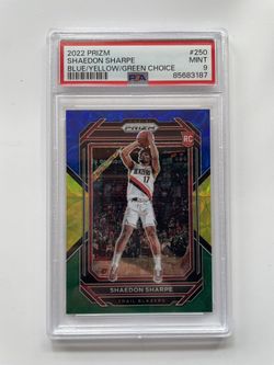 2022-23 Prizm - RARE SSP PSA 9 Choice Blue Yellow & Green Shaedon Sharpe RC$70Springfield, MA