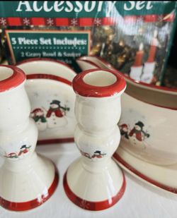 Royal Seasons 5 Piece Stoneware Christmas Snowmen Holiday Vintage Accessory Set$20Longwood, FL