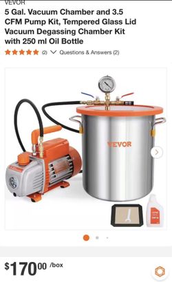 VEVOR 5 Gal. Vacuum Chamber and 3.5 CFM Pump Kit, Tempered Glass Lid Vacuum Degassing Chamber Kit with 250 ml Oil Bottle$150Las Vegas, NV