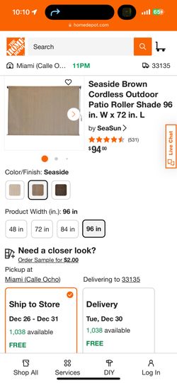 Cordless Outdoor Patio Roller Shade $130Hialeah, FL