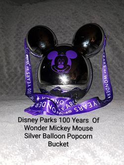 New Disney Parks 100 Years Of Wonder Metalic Purple Mickey Mouse Balloon Popcorn Bucket With Lanyard$20Riverside, CA