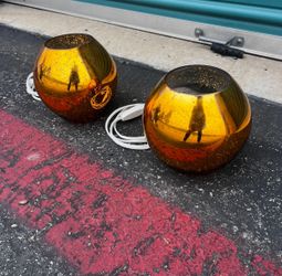 Pair Of Orange IKEA Knubbig Table Lamp Metallic Gold 7” Glass Globe Space Accent Light$100Orange, CA