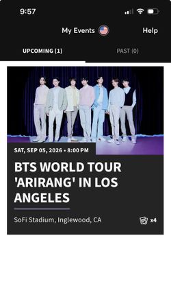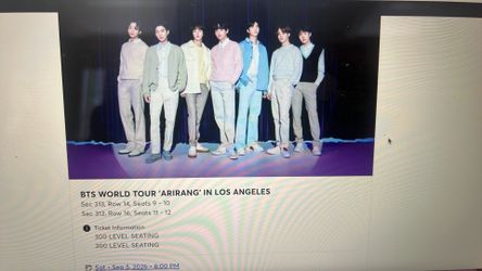 BTS @SOFI SATURDAY NIGHT 9/5/26$500Los Angeles, CA