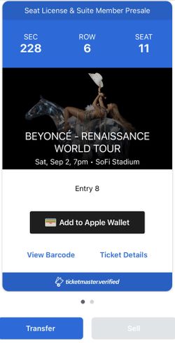 Beyoncé @Sofi 9/2/23$450Burbank, CA