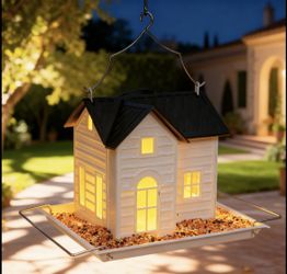 Small Cute Outdoor Solar Yard Decor Light House Shape 6.9 In Metal Hanging Bird House And Solar Garden Lantern Waterproof Yard Decor For Outside $15Long Beach, CA