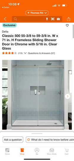 Delta Classic 500 55-3/8 to 59-3/8 in. W x 71 in. H Frameless Sliding Shower Door in Chrome with 5/16 in. Clear Glass$400Phoenix, AZ