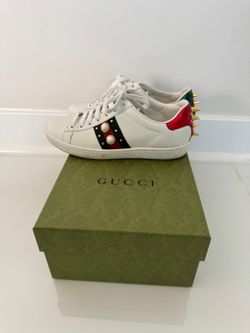Gucci Ace White Calfskin Faux Pearl Accent & Spike Sneakers Size 35 Europe Size 5 America$375Boiling Springs, SC