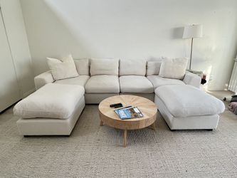 Tatman Linen Blend Sofa Couch with 2 Ottomans Beige/Cream$650Newport Beach, CA