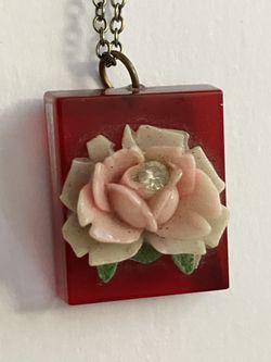 Vintage Red Acrylic Pink Rose Charm Pendant Necklace - Antique Jewelry$15Albuquerque, NM