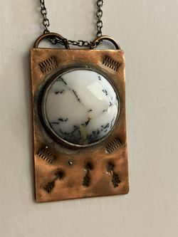 Hammered Copper w/ Howlite Crystal Artisan Engraved Pendant Necklace - Southwest Jewelry$50Albuquerque, NM