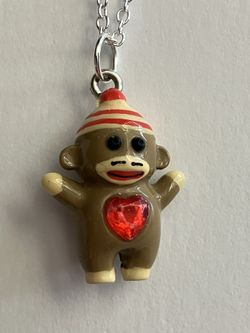 Miniature Sock Monkey w/ Rhinestone Heart Charm Pendant Necklace - Cute Jewelry$20Albuquerque, NM