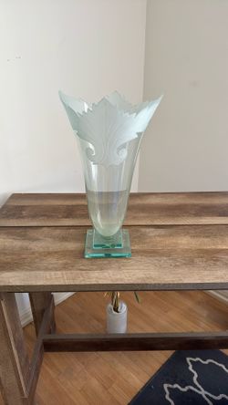 Vintage GUENTHER LUNA Signed Art Glass Large 13" Flower VASE Jade Clear Frosted$80Gardena, CA