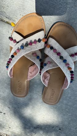 TOMS Women’s Size 7 Beaded Slide Sandals Boho Multicolor Pom Detail$25Palm Desert, CA