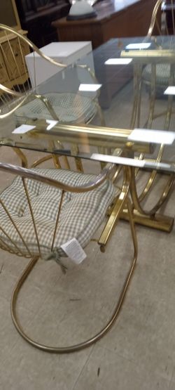 Five Pc Glass/Gold Metal Table Set. Four Meatal Chairs With Pillows $99Ellenwood, GA