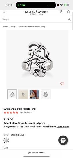 james avery 6 1/2 swirls and scrolls heart ring$65San Antonio, TX