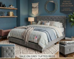 New GRAY BED FRAME VELVET DIAMOND HEADBOARD WITH MATTRESS AND BOX SPRING SET 3PCS FREE DELIVERY! $499Miami Beach, FL