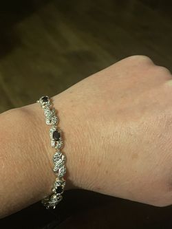 STERLING SILVER 6 STONE DEEP BLUE SAPPHIRE SILVER AND VERMEIL BRACELET 7 1/4". STAMPED 925 AND IN EXCELLENT CONDITION.$50Federal Way, WA