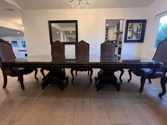 Dining Table With 8 Chairs And Custom Made Glass Top 118 X 48 $1,100Los Angeles, CA