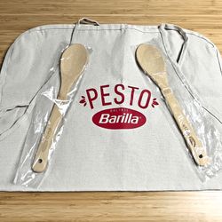 Barilla Pesto Canvas Cream Color Apron w/ Pocket & 2 Wooden Spoons$3Palisades Park, NJ