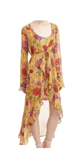 No Boundaries Womens Duster Kimono Yellow Golden Floral Size LG Ruffle Tie Waist$25San Diego, CA