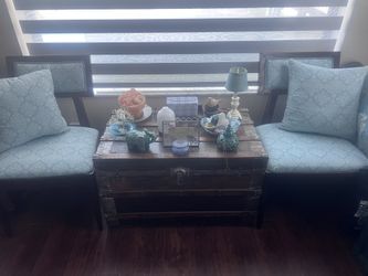 Pair of teal accent chairs with matching pillows$199Pompano Beach, FL