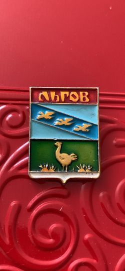 USSR vintage enamel pin featuring the coat of arms of Lgov$8Yonkers, NY