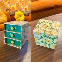 Vintage Antique Mini Drawer Chest Cardboard Trinket Box Green Yellow Daisies Flowers Mid Century MCM 70s 60s$40Los Angeles, CA