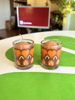 Vintage 1970’s Candles Set of 2 Small Table Glass Brown Boho Hippie Amber Orange$10Los Angeles, CA