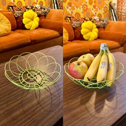 Vintage Lime Green Fruit Basket Bowl Wire Metal Round, 1960s 70s 90s Minimal Mid Century MCM Mod Kitchen Storage Space Age$40Los Angeles, CA
