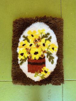 Vintage 70s Latch Hook Flower Bouquet Art Hanging, Rug Woven Knit Fiber MCM Retro Daisies Mid Century $50Los Angeles, CA