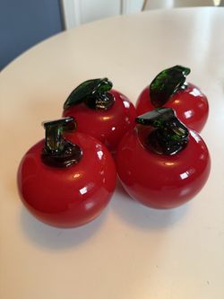 Vintage Murano Style Hand Blown 4” Glass Red Apples lot of 4$30Tacoma, WA