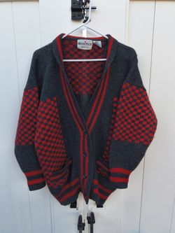 Vintage Nordstrom Brass Plum Shetland Wool Cardigan Sweater Small Checkered $65Norwalk, CA