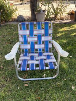 Vintage Webbed Aluminum Outdoor Folding Lawn Chair Red White Blue W Cup holders$47Norwalk, CA