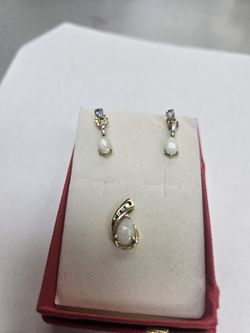 10k Gold Opal Earrings Blue Stone on Top And White Stones With Pendant Matchin Set$325Norwalk, CA