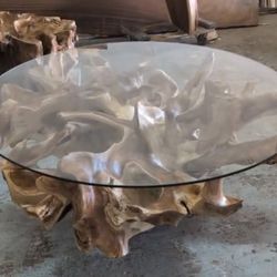 50” Round Glass Top Coffee Table Teakroot Base$1,100Hollywood, FL