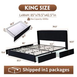 King size black velvet 4 Drawers Upholstered Storage Bed with Wingback Headboard$220Salt Lake City, UT