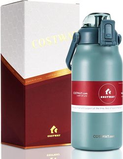 COSTWAY 44oz Vacuum Insulated Water Bottle, Leakproof Flask with Straw, Flip Top Lid, Wide Mouth & Handle Gift, BPA Free Stainless Steel Water Jug for$20Los Angeles, CA