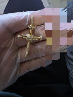 SS925 Moissanite Diamonds Gold Over Cross Pendant $225Los Angeles, CA