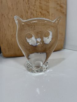 Vinatge Mid Century Modern Stylized Clear Hand Blown Glass Owl Figurine Paperweight Rainbow 1960$25Miami, FL