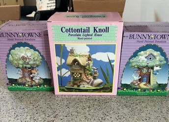 Two Easter Unlit Porcelain Houses And One Lit Easter Porcelain Shoe Never Used $20Methuen, MA