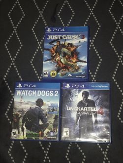 PS4 Games Uncharted 4 / Just Cause 3 / Watch Dogs 2 $15Ontario, CA