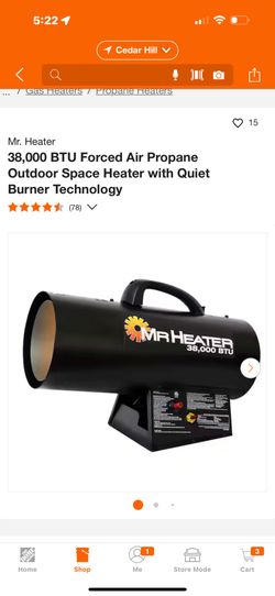 Mr. Heater 38,000 BTU Forced Air Propane Outdoor Space Heater with Quiet Burner Technology$125Cedar Hill, TX