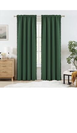 Melodieux Boho Blackout Curtains 108” Green Pom Pom Drapes 52x108 2 Panels$25Hacienda Heights, CA