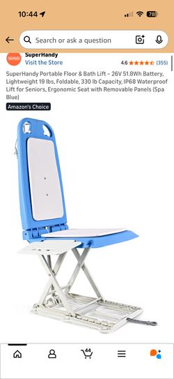 SuperHandy Portable Floor & Bath Lift – 26V 51.8Wh Battery, Lightweight 19 lbs, Foldable, 330 lb Capacity, IP68 Waterproof Lift for Seniors, Ergonomic$280City Of Industry, CA